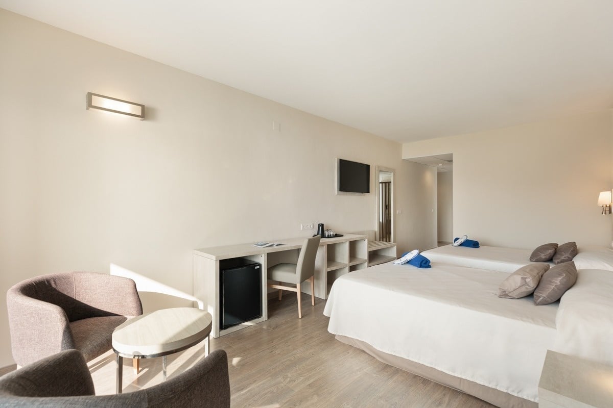 Habitaciones con posibilidad para acoger hasta cuatro personas. Podrán estar equipadas con dos camas queen size (no admiten supletorias).