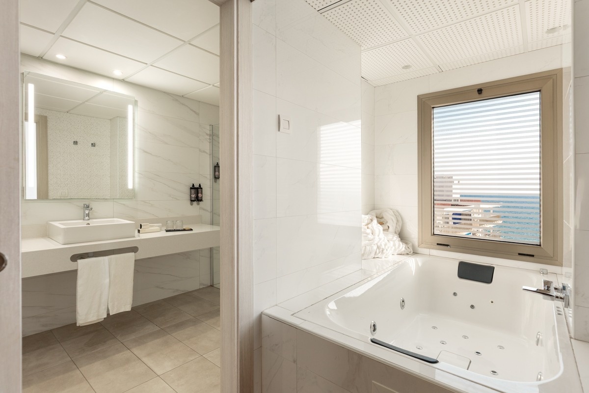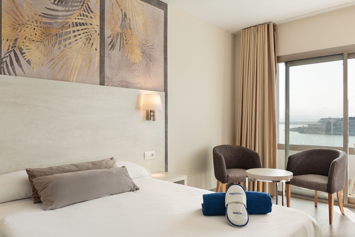 Habitaciones con vista al Mar con posibilidad para acoger hasta cuatro personas. Podrán estar equipadas con dos camas queen size (no admiten supletorias).