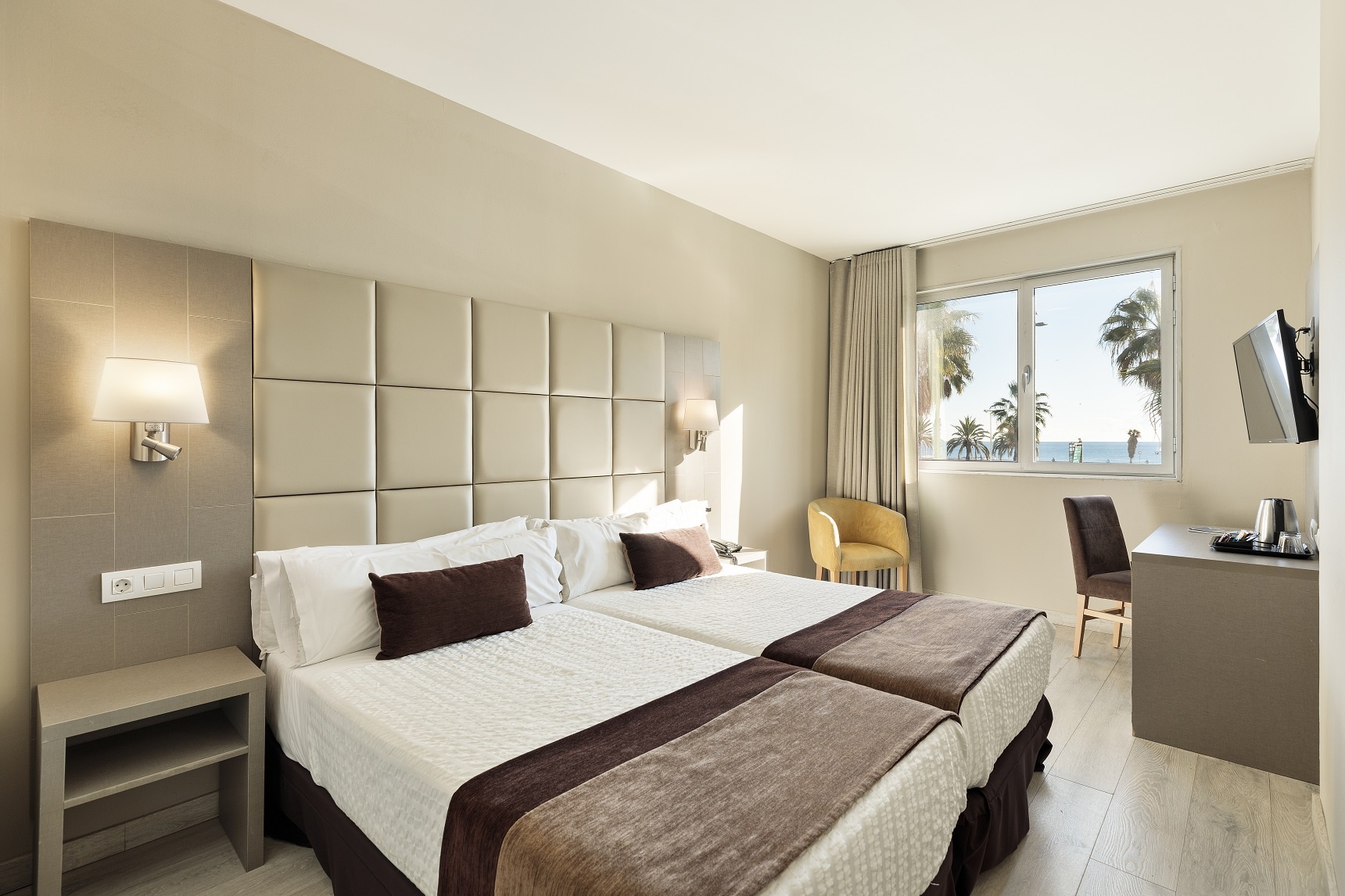 Modern, functional and comfortable rooms located on the 1st floor and facing the sea, consisting of 2 90x190 beds. Designed to guarantee maximum performance at the highest level of rest, regardless of whether it is for work or leisure travel (from 20m2).